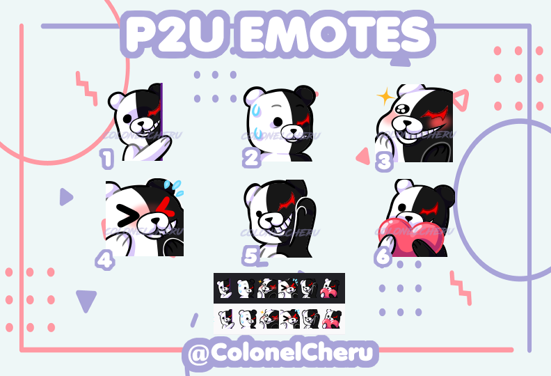 You will recieve a set of Monokuma Emotes that can be used on Discord, Twitch and Youtube.